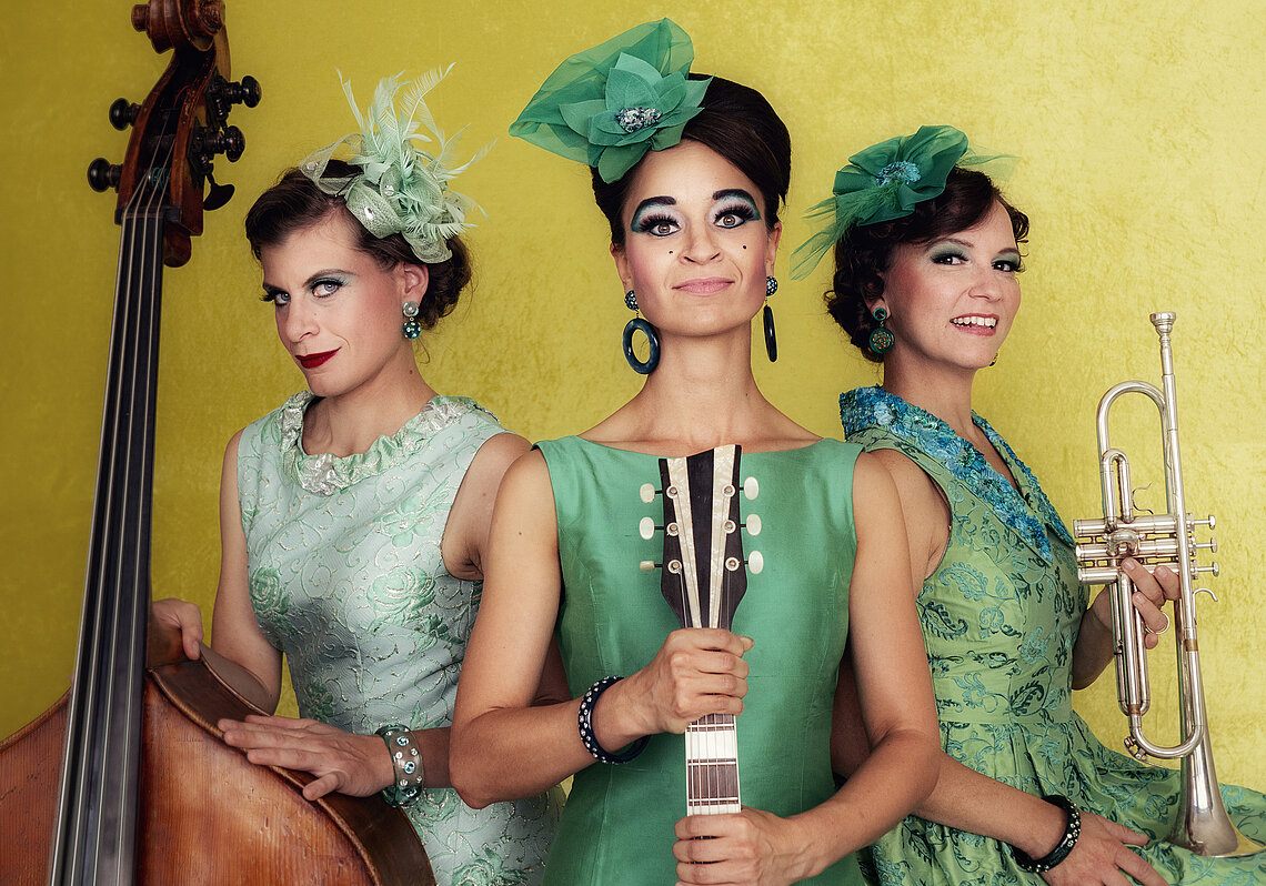 Jule Balandat setzt am Kontrabass souverän das Fundament, während Tina Werzinger an der Schlaggitarre und Ukulele für den treibenden Rhythmus sorgt. Sinje Schnittker überzeugt nicht nur an der Trompete, sondern bringt mit Klarinette, Posaune, Flügelhorn, Akkordeon, Xylophon u. a. m. viele zusätzliche Klangfarben ins Spiel.
